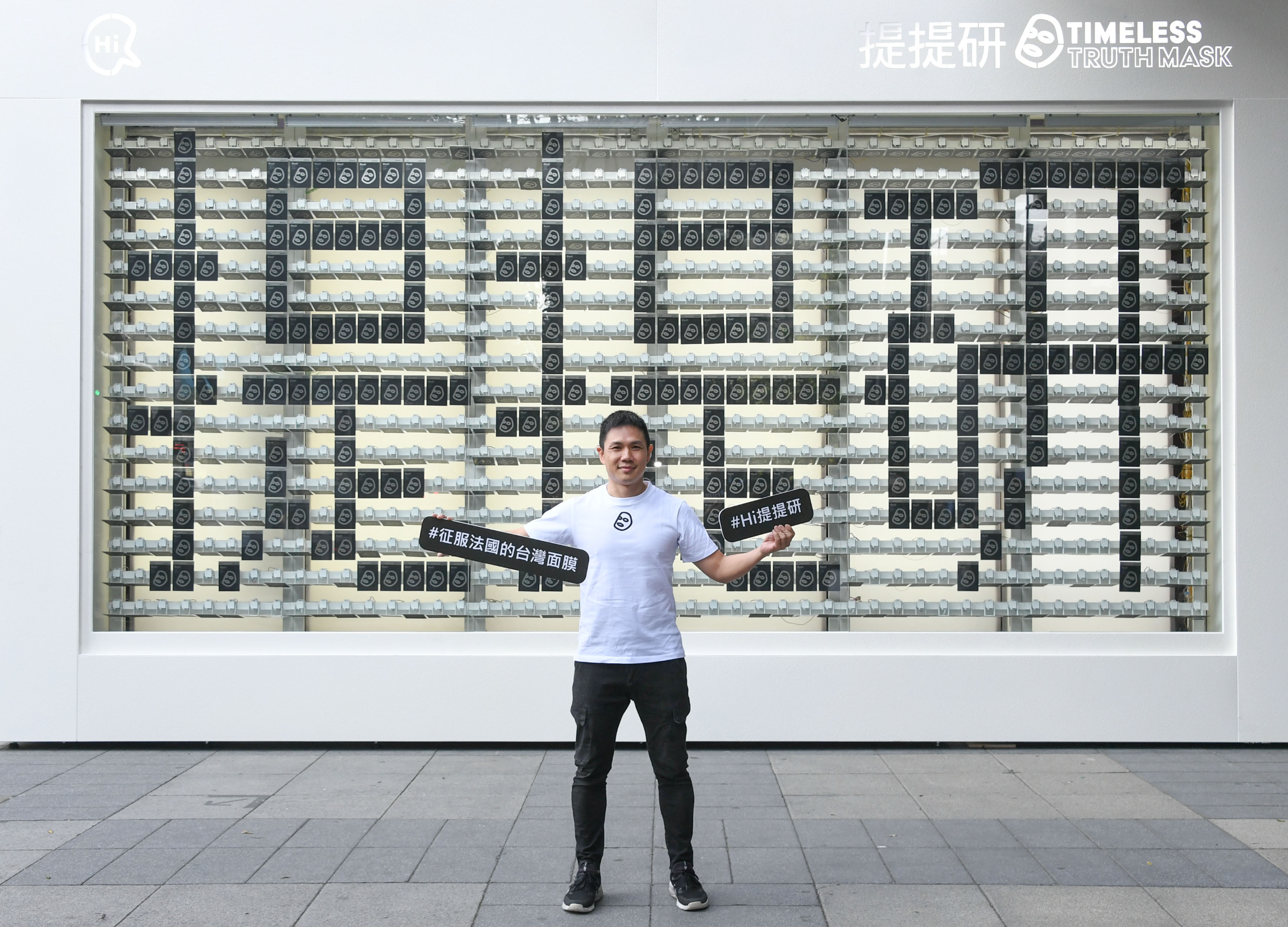 征服法國的台灣面膜提提研,在ATT 4 FUN松智路口打造全台最大,而且「會聊天」的面膜告示牌!展示近千片剛榮獲2018英國OK美妝大賞的「瞬白酷涼黑面膜」,只要站在指定位置,並對告示牌說聲「Hi」,就會啟動對話裝置,告示牌內的面膜會翻轉不同的應景祝賀與你對話,非常新奇!