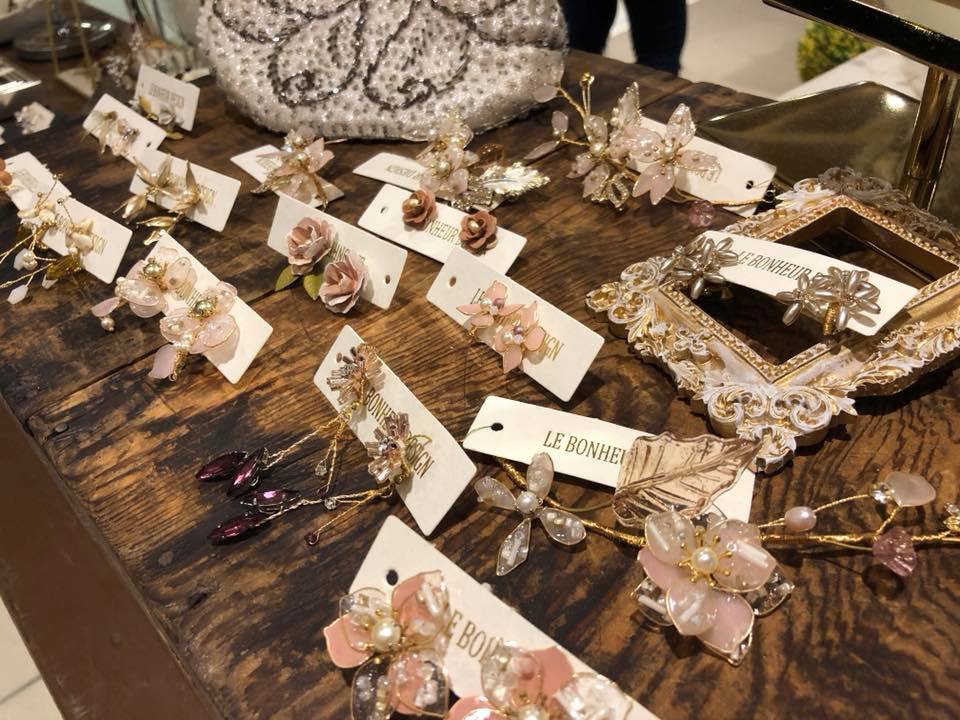 完成禮服的挑選之後還有最後一個步驟就是髮飾挑選,由Le Bonheur Design手工飾品負責這個部分,會針對當天挑選的禮服款式與色系搭配飾品,這次由Le Bonheur Design帶來的飾品絕對會讓飾品控陷入瘋狂,因為近年來新娘們喜愛的風格多偏向仙氣、優雅的自然花草系風格,由金銀絲線纏繞的枝枒栩栩如生,搭配蕾絲層次的花葉設計,配戴後真的像森林中的精靈一般脫俗!