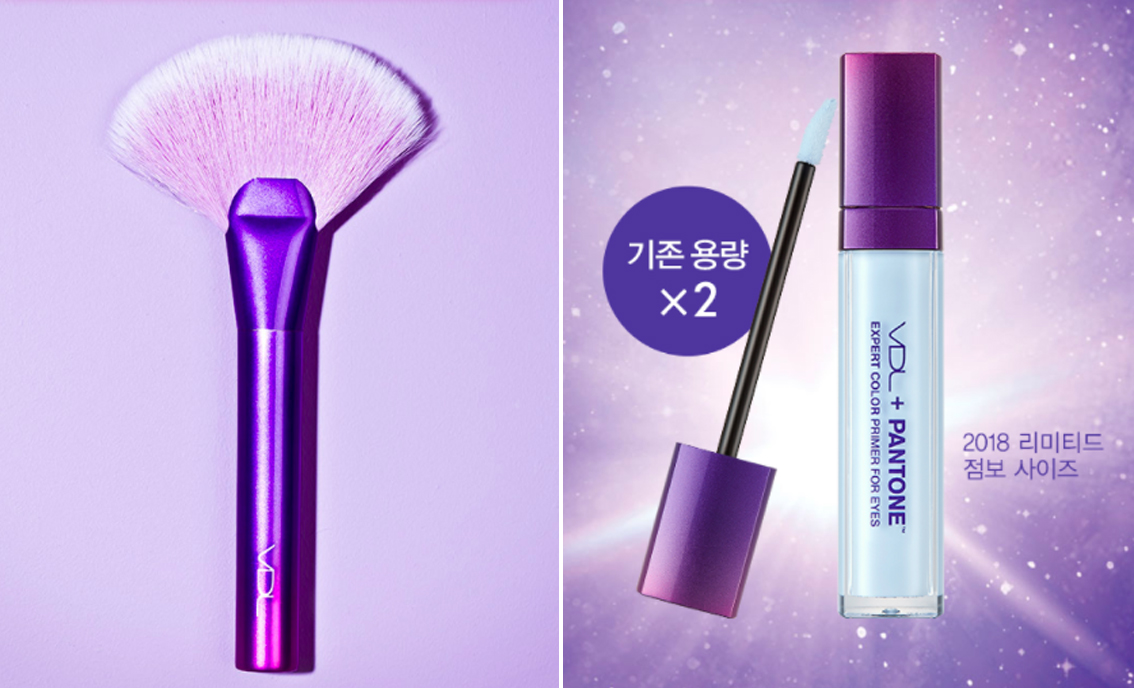 還有一支極度夢幻的紫外光刷具,從扇形刷毛到握柄,都充滿了紫色漸層。另外,VDL很厲害的眼皮妝前打底液,則推出PANTONE紫外光限定版的獨角獸色,充滿仙氣,可以用來打亮,還能讓眼影更持妝。