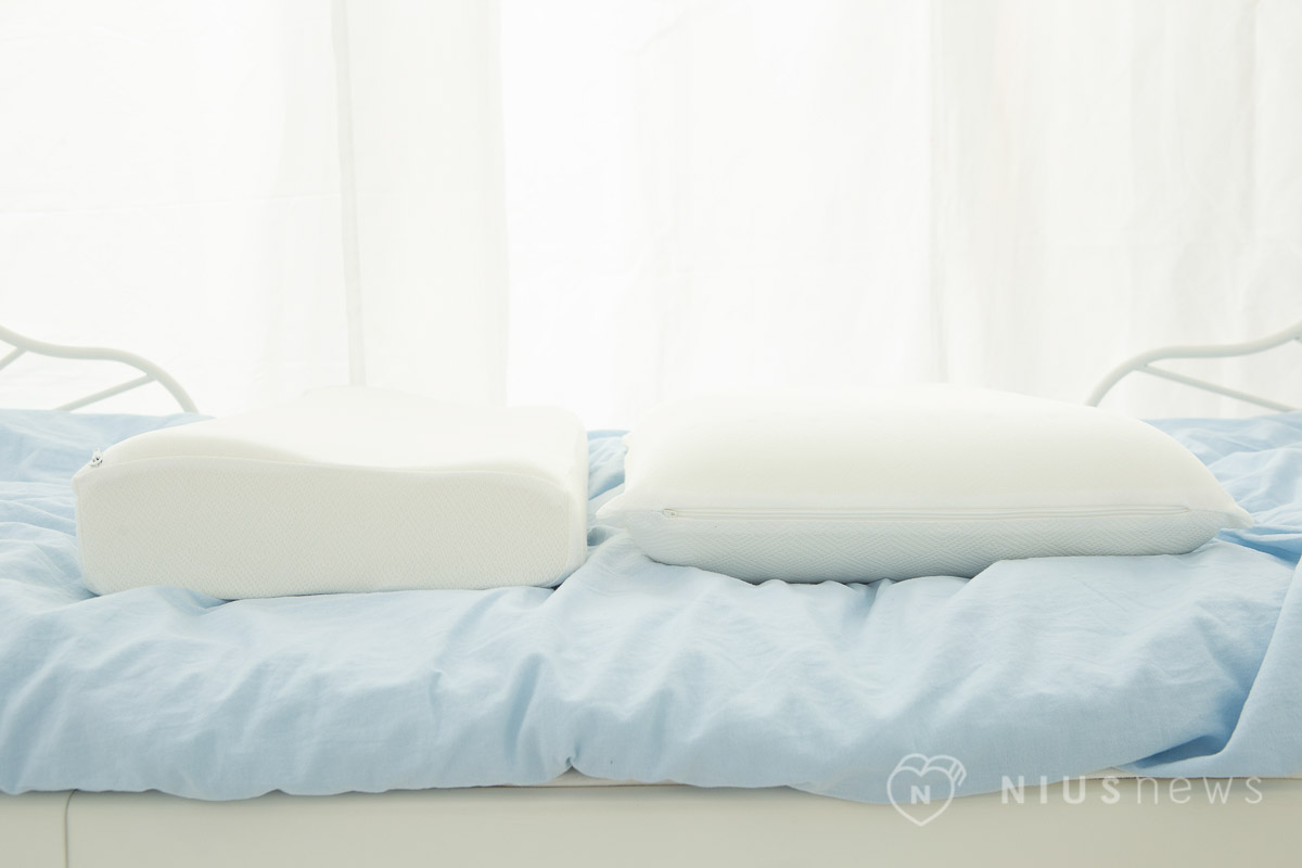 記憶枕頭分為左邊:曲線型、右邊:麵包型