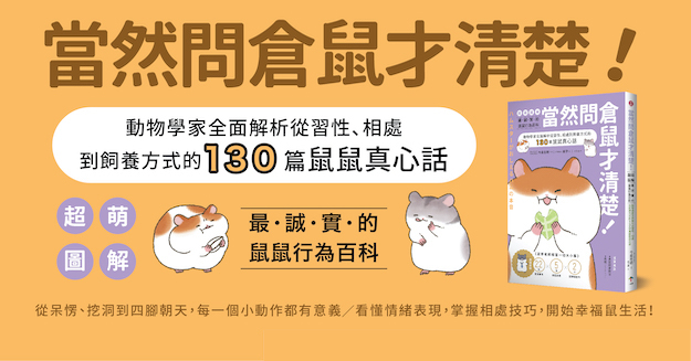留言即有機會獲得《當然問倉鼠才清楚!最誠實的鼠鼠行為百科》x 1 ▶ 點我抽獎去