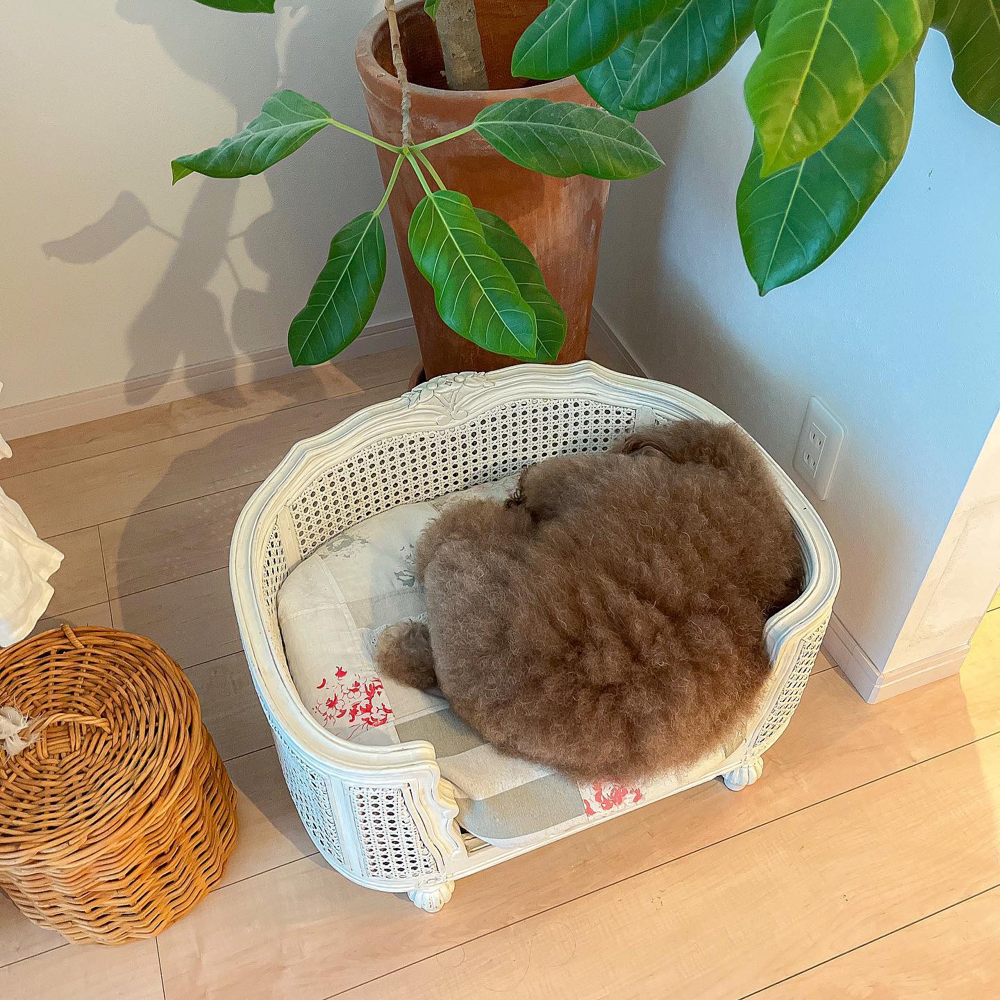 IG 帳號「@__mohu_c」是一位日本飼主替自家狗狗「Chiro」創立的狗帳,Chiro 是一隻即將滿 7 歲的棕色玩具貴賓,渾身小卷毛+肥美到不行的外貌,讓他看起來就像一塊行走的大雞塊,而最近飼主突發奇想替 Chiro 拍攝「野菜攤毛店長」系列照,畫面竟意外療癒,讓許多狗奴都忍不住點讚呢!