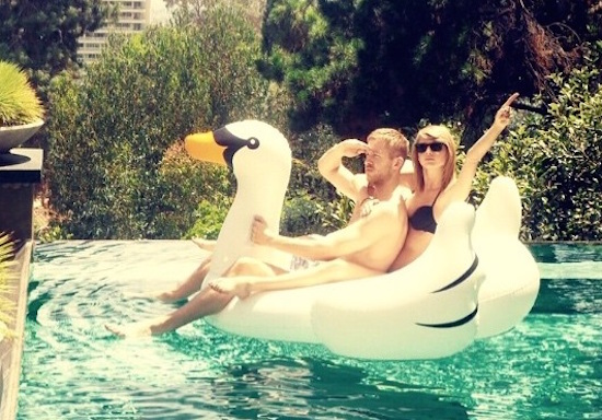 就連泰勒絲(Taylor Swift)之前也和男友凱文哈里斯(Calvin Harris)共乘天鵝泳圈!