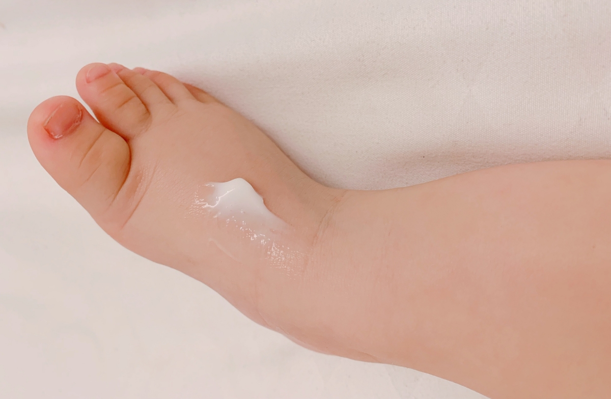 添加近似胎脂的乳木果油、米糠油等天然油脂成分,豐厚的乳霜質地,實測結果確實較油較黏膩,但若是天氣變化或冬天外出就很適合使用這款,更能有效形成保濕屏障,呵護寶寶嬌嫩的臉部肌膚,也可舒緩嬰兒口水區的肌膚不適。
