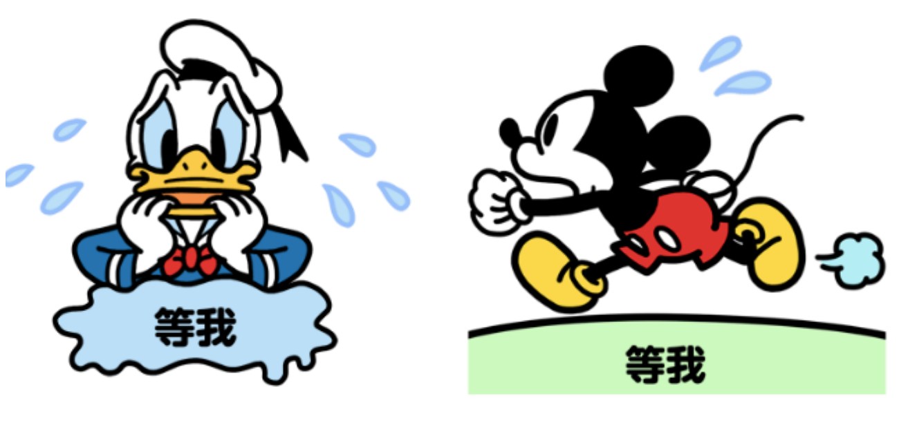 這組貼圖收錄了米奇與好朋友的喜怒哀樂,也很適合用來表達你的情緒 ,只要輸入你現在的心情即可。整隻鴨(?)趴在地上一臉愁容,與米妮托著腮皺起眉頭的模樣,再搭配「煩欸」兩個字,看起來真的有夠煩惱的啊~Q_Q