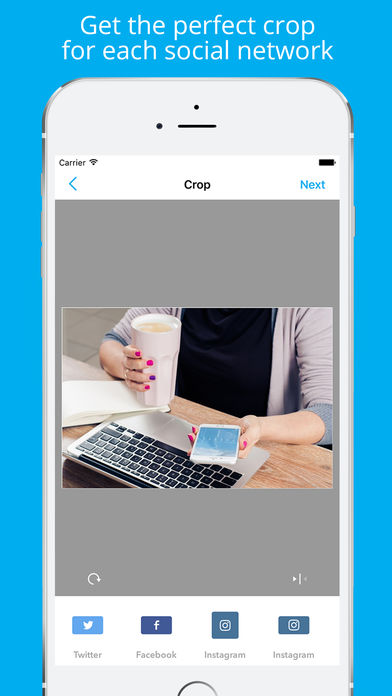 再來推薦各位妞妞一款快速、好上手的照片編輯軟體。這款App可以依照個人喜好調整照片的長寬比,還內建各個社群網站的指定比例(例如IG的正方形尺寸),內建調整曝光度等照片調整功能,另外還提供藝術工具,讓使用者可以在相片加上浮水印或者是社群網站的標誌,製作好之後按下「一鍵分享」就能快速上傳到社群網站啦~(就是一款快狠準的軟體)