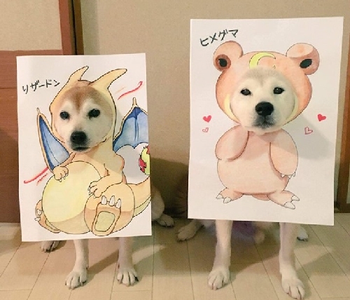 牠們是Suzuki家裡養的兩隻柴犬,叫做S跟H(主人你可以再懶惰一點)分別是一位男孩和女孩,兩隻常常窩在一起睡覺或是玩耍,所以就常常被主人當成惡搞的對象,出現了這一系列的神奇寶貝裝扮