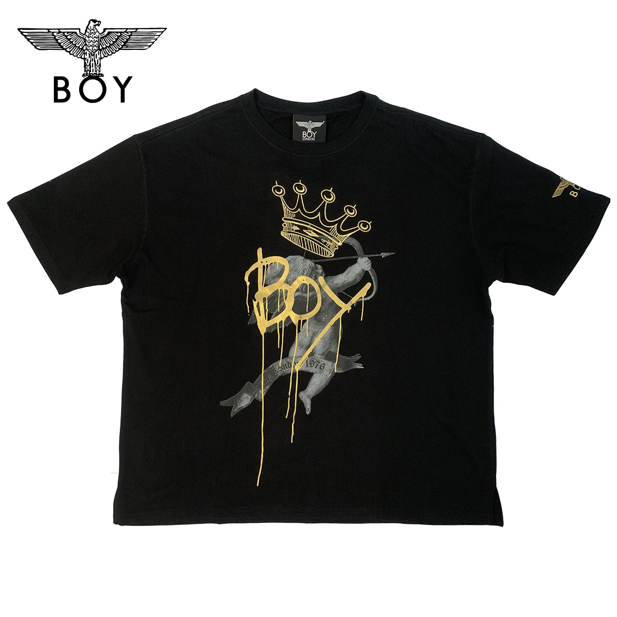 早秋系列以羅馬神話中的愛神邱比特為主角,趣味翻玩融合現代元素而成的異次元狂歡系列,將BOY LONDON字樣LOGO結合愛神邱比特而成的全新圖樣視覺,大面積印刷在布料上十分搶眼。