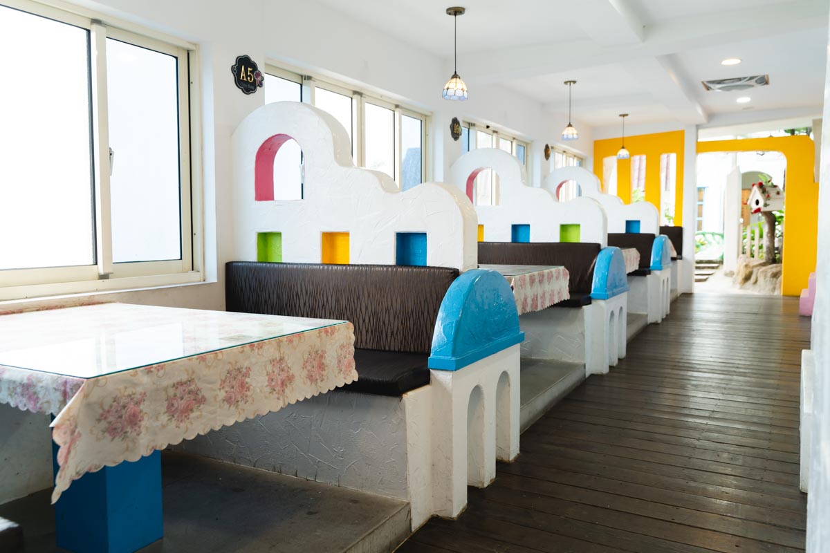 由一對姐妹共同經營的「維野納」同樣擁有三層樓,不僅佔地遼闊且用餐空間寬廣舒適。老闆娘在自己有了小孩後意識到帶小孩出門用餐的辛苦,因此咖啡廳也逐漸轉為主打家庭親子共遊,除了有戶外的草皮可以踏青嬉戲外,店內還設置兒童遊憩空間,像是溜滑梯、繪畫區等,即使帶著小孩也能好好用餐與享受山野風景。