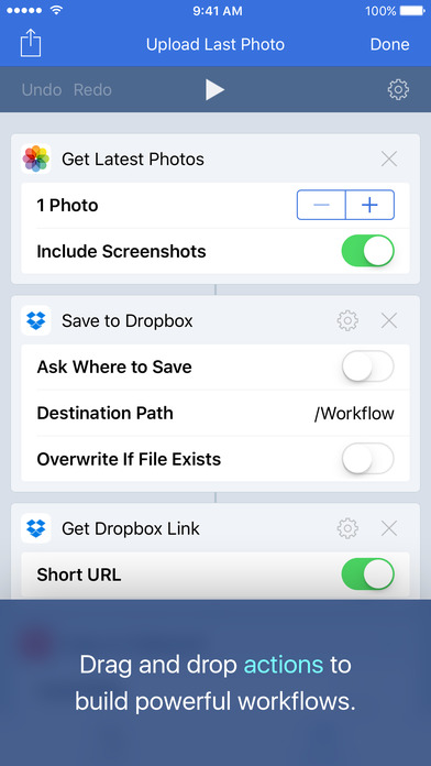 是不是覺得常用的App要一直開開關關很麻煩呢?《Workflow》就是一款能幫你簡短步驟的一個超好用工具喔!《Workflow》內建了100多種的指令,方便到我們就像能客製化自己的手機一樣,完全依照我們的習慣操作呢!