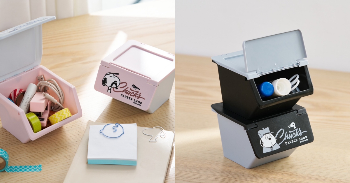 桌面雜物超多、不知道如何收拾的妞妞們,請一定要收「造型迴紋針置物盒」,兩入一組,頂部凹槽設計、可堆疊放置;貼心的開闔上蓋設計,防塵又耐用,且附贈可愛造型史努比系列迴紋針,可以好好地將東西分類!