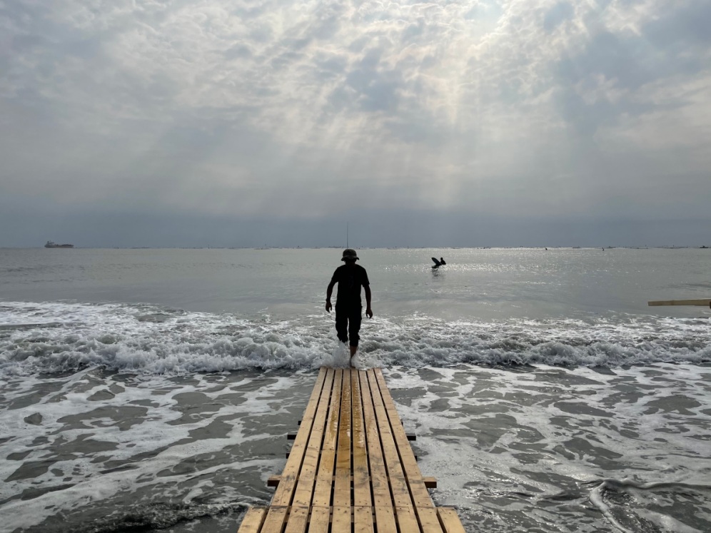 漁光島沙灘旁波光粼粼的台灣海峽,上面漂浮著許多蚵棚,是藝術家石昭永此次設計的靈感來源。本作品將海中的蚵棚重新組合,配合漁光島的夕陽餘暉,當光線進入這夢想之框中,將會展現不一樣的面貌,也能激發旅人的各種想像與創意!(或是激發大家的拍照技術XD)