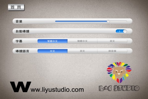 在首頁即可看到精美又具有質感的圖畫作背景以及搭配輕快的背景音樂,其選項的擺放位置和設計不論是大人或小孩都能夠很方便的操作
