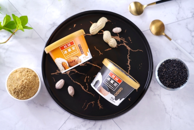 「流心芝麻冰淇淋」直接還原桂冠湯圓內餡,將帶有玄米香的冰淇淋加上經典芝麻所製成,並使用獨特的注射方式,把芝麻流餡注入中心,妞妞們輕輕挖開之後,濃郁又香滑的芝麻內餡就會傾流而下,雙重口感一次享受!