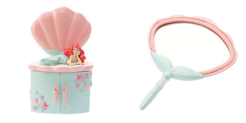 愛麗兒悠閒地躺在珠寶盒上面,後面的貝殼可以拿起來變成一面鏡子,握柄的部分還做成人魚尾巴的形狀,也太精緻了吧!