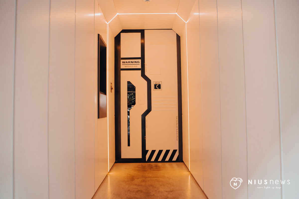 喜歡巴斯光年、星際大戰等太空元素的妞妞們有福了,位於台北東區小巷內的「To Infinity and Beyond」是一個以銀河、外太空為元素的特色酒吧。從銀色的大門到內部裝潢都別出心裁令人驚艷,連酒單也超豐富又充滿設計感!拉開大門映入眼簾的是這個即將進入外太空探險的警告門,準備好進入銀河系探險了嗎?跟妞編輯一起按下紅色按鈕吧!