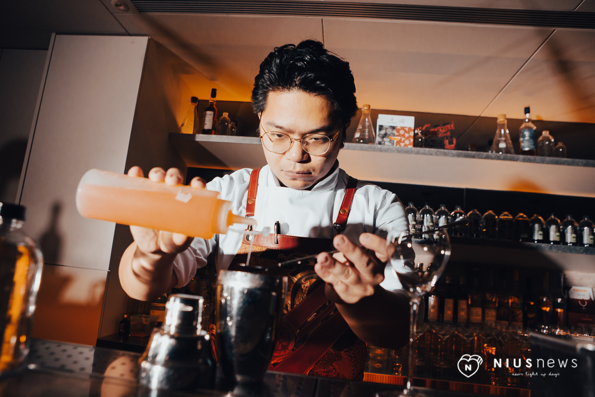 這杯「地球滋味」是Mars在2021World Class比賽中,賽程第二階段的「瓶裝調酒(Bottle Cocktail & Twist)挑戰賽」的冠軍酒!他希望可以用一杯酒代表「地球香氣」,寄一瓶調酒給太空人,緩解他們在宇宙間的思鄉病,利用松針萃取出森林的氣味,再找來祕魯聖木打造出特殊的枯葉、土壤的氣息,加上粉紅胡椒和澄清葡萄柚汁,帶出柑橘檸檬香氣和酸度層次,剛喝下去的瞬間,真的有穿越時空到森林裡的感覺呢。