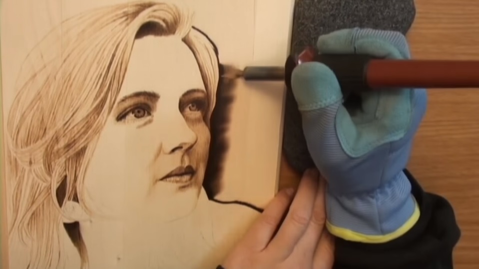 即使她的焊槍不是在平坦滑順的紙上,但她的成果依然逼真。