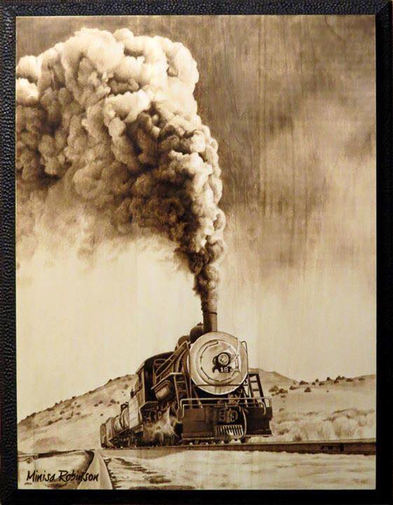 一般要在紙上畫煙霧就已經很難了,更何況是用這種讓木頭燒焦的方式...再看看火車構造的精細!實在是太厲害了!