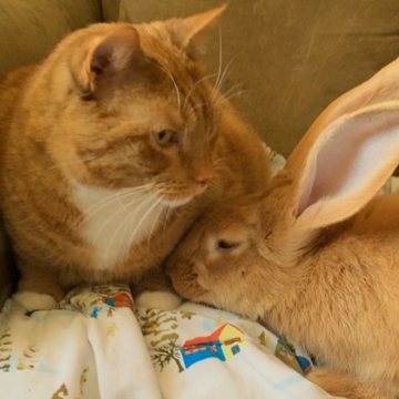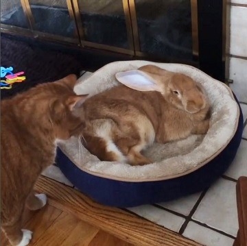 這隻名叫Wallace的棕色兔子,一直以來都是在Instagram上非常多人關注的名兔,因為除了牠本身又大又長的耳朵非常特別之外,還有一隻叫做Gus的橘色貓哥,兩隻的互動讓許多網友都覺得真是太有愛惹(是不是很像!)