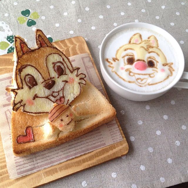 迪士尼的超人氣花栗鼠-奇奇蒂蒂~拉花與立體吐司的組合光是看了心情就好好啊!