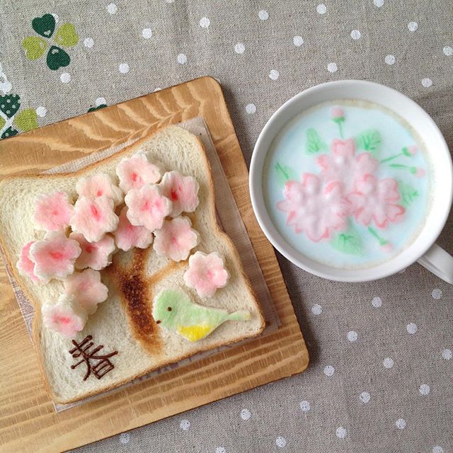 除了卡通圖案竟然連賞櫻必備的櫻花系料理也能用吐司做出來~(帶去賞櫻一定超受歡迎)
