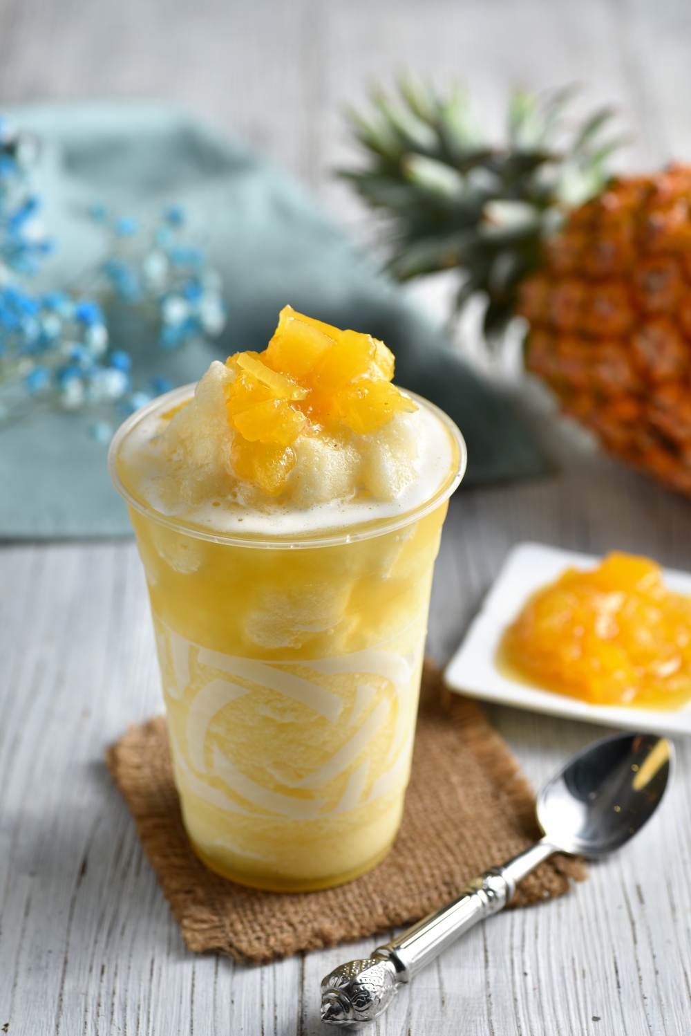 使用台灣高山甘醇的現萃天廬烏龍茶,加入CHAFFEE手工細火慢熬的新鮮鳳梨醬,再以檸檬香氛點綴提味,茶的清香與果的酸甜還有滿滿的鳳梨果肉,使風味甜而不膩,配上碎冰沁心口感在口中激盪,成為飲品界的小清新,也是春日午後人手一杯的散步飲品。