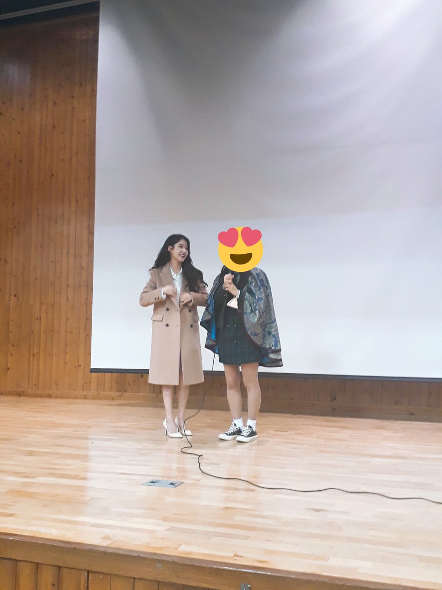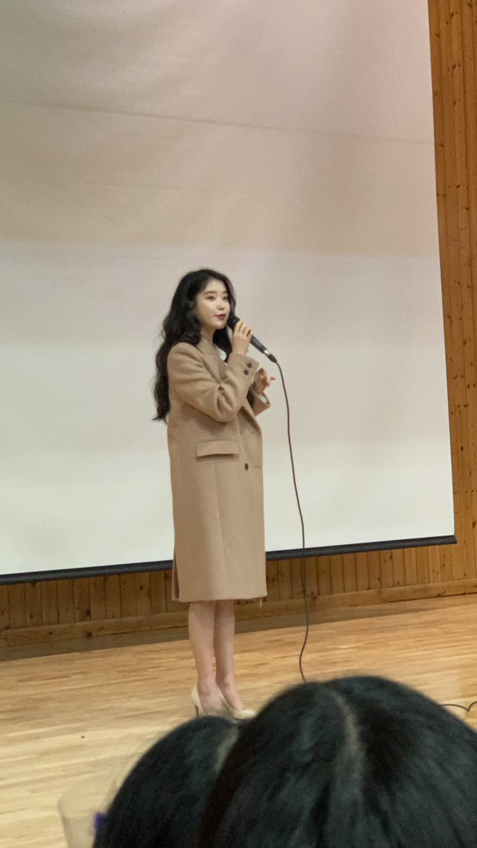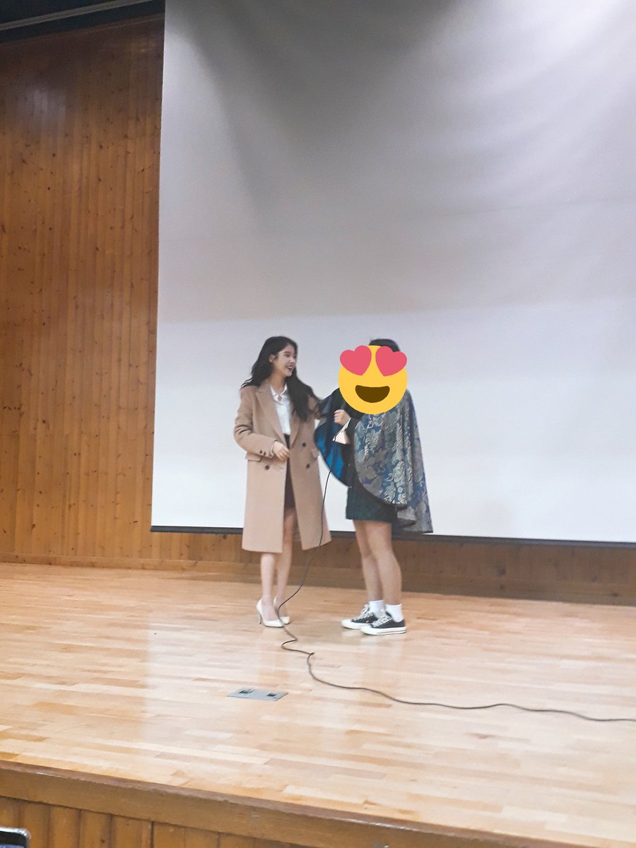 當天,IU請那位粉絲上台後,就像親姐姐一樣先給他一個大大的擁抱,更送上畢業祝福,讓粉絲超級感動!更超暖的為全校畢業生、老師都送上特別的禮物,挑選別具意義的「小蒼蘭」做為畢業花束,花語「為你的啟程應援」(天啊!好感動QQ),同時準備了巧克力、身體乳、保養品一同送上,現場更演唱〈BBI BBI〉、〈Meaning of you〉等人氣歌曲,為畢業生打造一個畢生難忘的美好回憶!