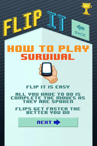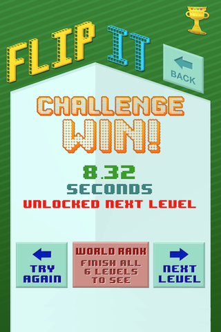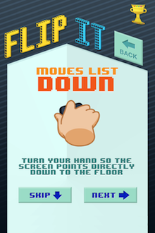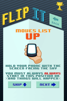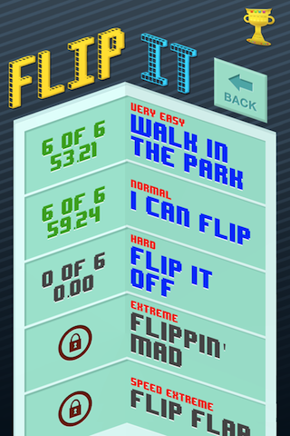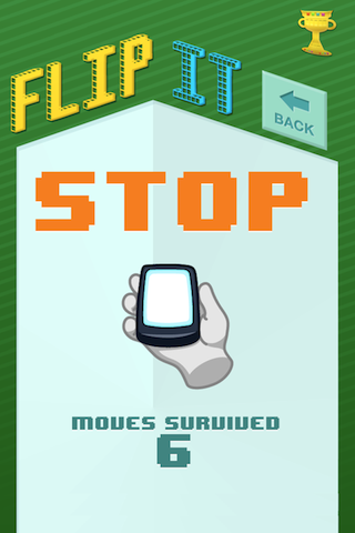 自己一個人的時候,也有不同的模式可以自我挑戰,Flip It! Gyro Game運用iPhone陀螺儀的動態感應功能(購買前請注意硬體需求喔!),讓你充分發揮反應能力。