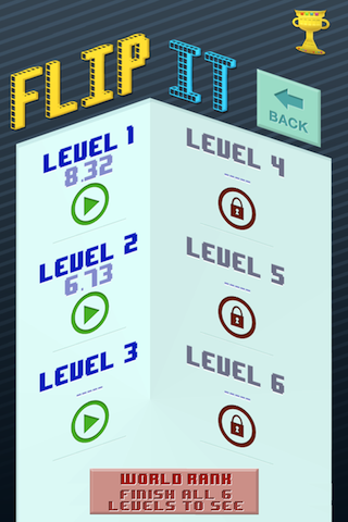 選單中可以看到你每一個關卡的秒數,當你依序完成每一個關卡後,你也可以看你在世界的排名。