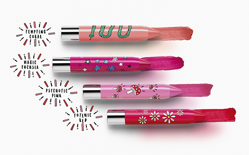 而且只要買大容量的Nina怪獸香水系列就送一支蠟筆唇膏,超級限定版本的唇彩,不只顏色粉嫩,外包裝也有巴西藝術家的手繪元素。想要包套收藏蠟筆唇膏的人,也可以單買喲!