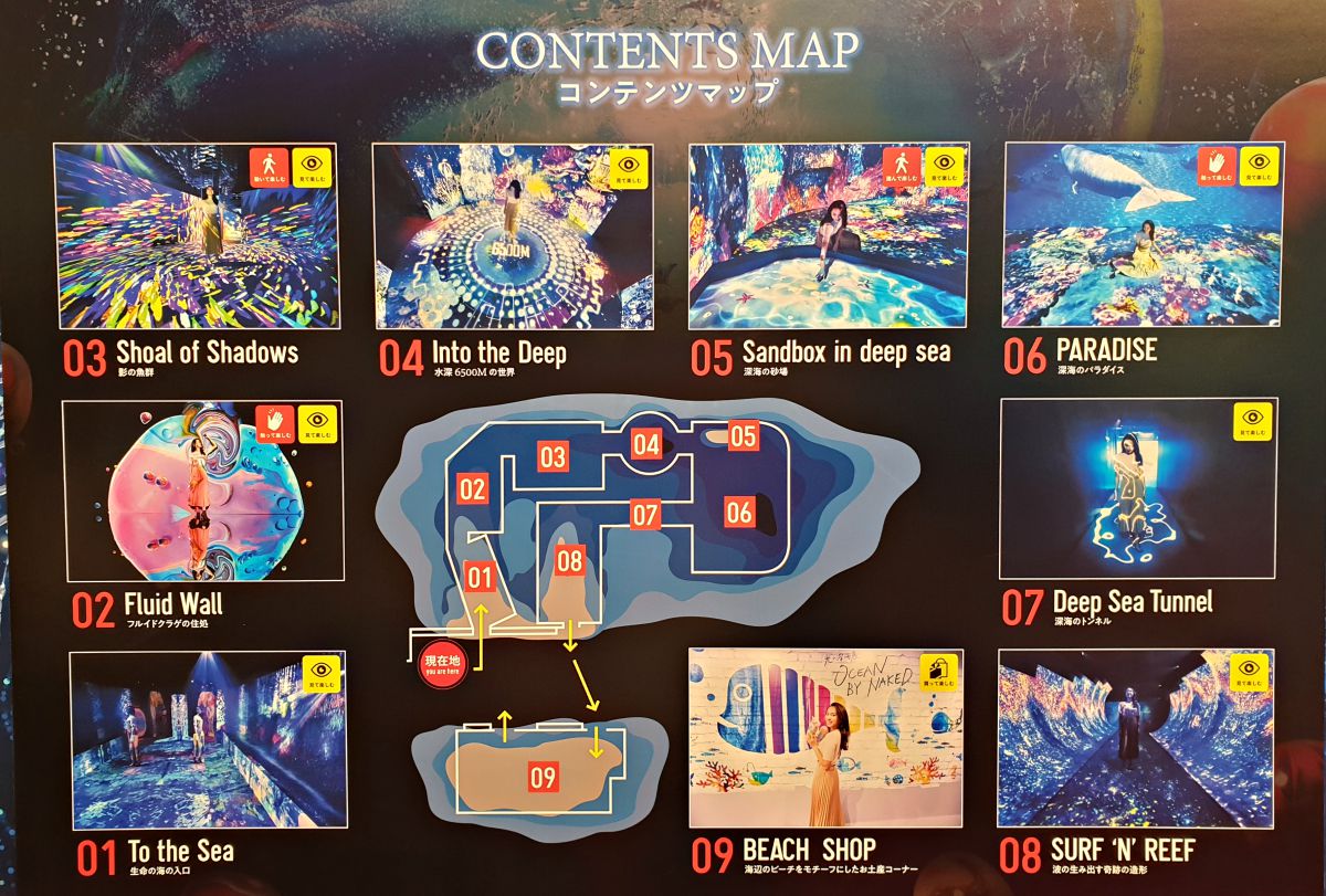 由於空間上的設計規劃,每一區的展演空間大小不同,會經過海底隧道的長長小徑,也可以進入遼闊的海洋美景,在這之中,建議可以多停留一點時間的分別是「Fluid Wall」、「Shoal of Shadows」、「PARADISE」這三區。
