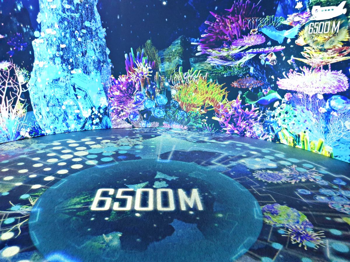 也可以用眼睛看到七彩繽紛的夢幻海底生物,並用自己的身體與它們進行一場有趣的互動,更可以毫不費力一口氣潛入6,500公尺的海底欣賞深海世界才能看到的奇幻景象。