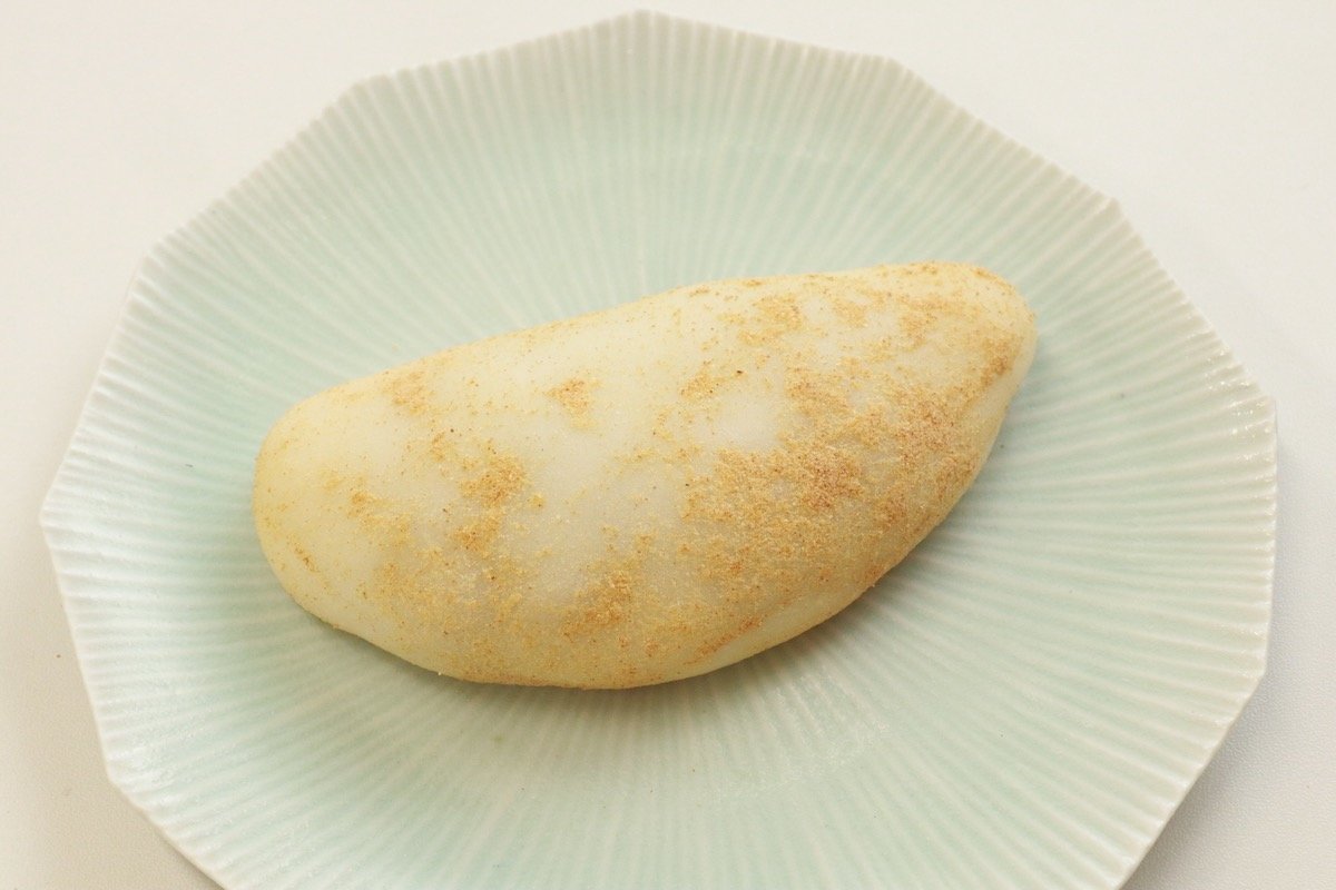 這是在年糕中搗入納豆的「納豆年糕」。可以嚐到納豆的香味,烤到微焦的話會更好吃。恰到好處的鹹味與納豆的鮮味令人上癮,也很適合搭配蔥來享用,或是當作章魚燒的材料。
