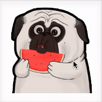 雖然不知道為什麼吃西瓜要用這麼嚴肅但又有點放空的神情,但也許這款貼圖就是用來表示「不知道」與「問號」的?!是說盯著巴扎黑的小嘴久了,竟然有種被療癒的感覺呢⋯⋯(XD)