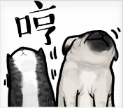 家裡同時養貓狗的人,這一幕有沒有很熟悉?!熱情過度的狗狗與在一旁冷眼觀看的貓咪。手機小姐覺得這款也有一點「傻眼貓咪」的感覺,要表達很無言的時候可以用!