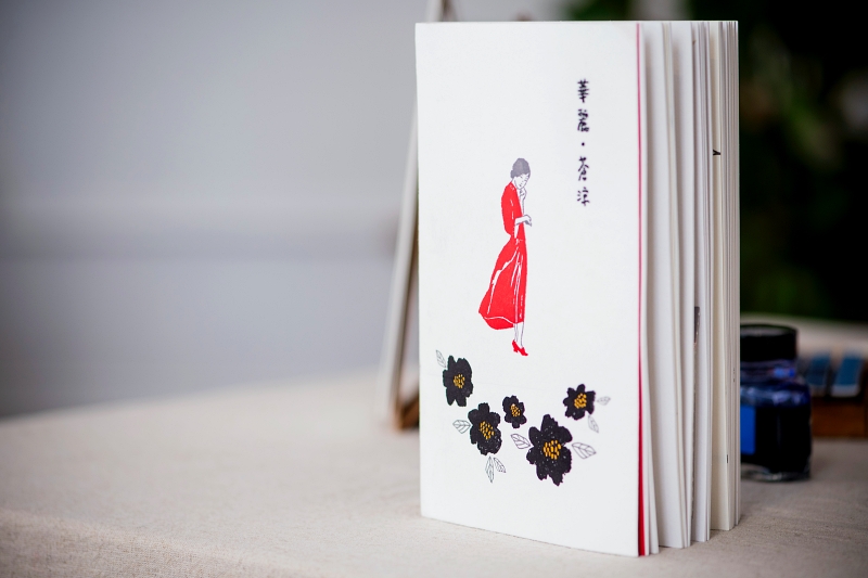 這本典藏手帳本,是張愛玲百歲誕辰的唯一周邊商品,插畫上也下足功夫,不只以紅裙代表豔麗的胭脂,更以黑色的花朵表現她作品中描寫的人性陰暗,兩種對比強烈的色調,也正象徵了張愛玲給人的多變印象。