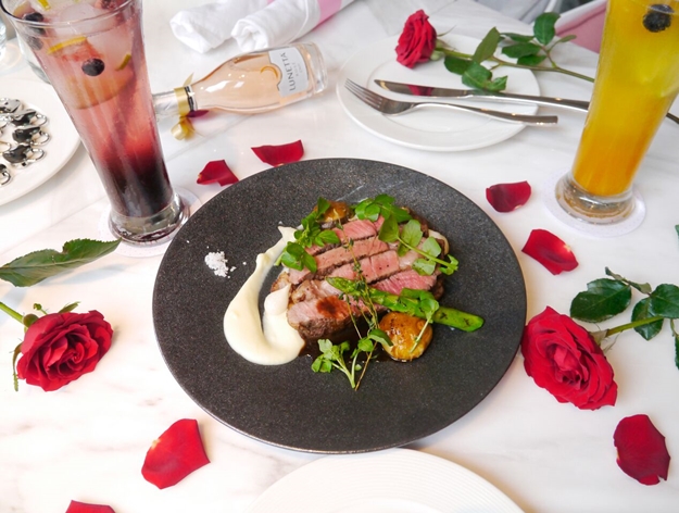 情人節雙人套餐:活動日期:2018/2/9~2/14,前菜是鮮甜松葉蟹及干貝混合橄欖油及紅蔥頭,搭配青花菜泥及柚子酸奶,清爽開胃。喝一口香氣濃郁的松露與口感溫潤的奶油濃湯,幸福感倍增。熱前菜的燻鴨胸青醬燉飯滿足味蕾。豐盛的主菜是煎烤的頂級肋眼牛排佐上馬爾頓海鹽,更顯鮮嫩多汁。飯後來份精選甜點,濃情愛意甜蜜蜜。