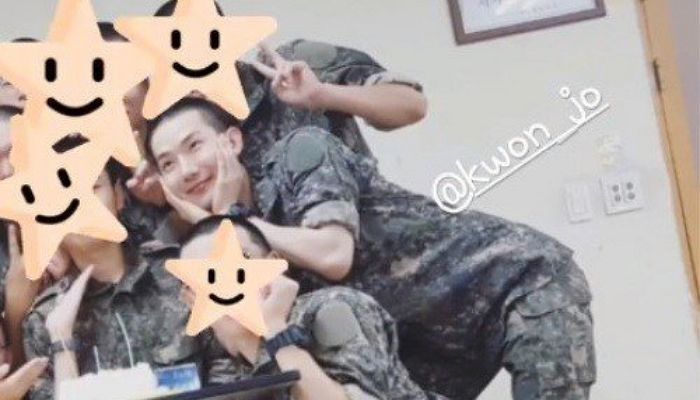 在8月初非公開入伍的2AM「趙權」,進軍中服役前也先在個人IG公開了落髮實錄(笑),還上傳給粉絲的親筆信暫時道別,最近也流出了他在軍中的日常照,照片中的趙權穿著軍服、雙手托腮,擺出可愛的姿勢與同期士兵們開心合照,俏皮的模樣看起來還是一樣元氣滿滿~