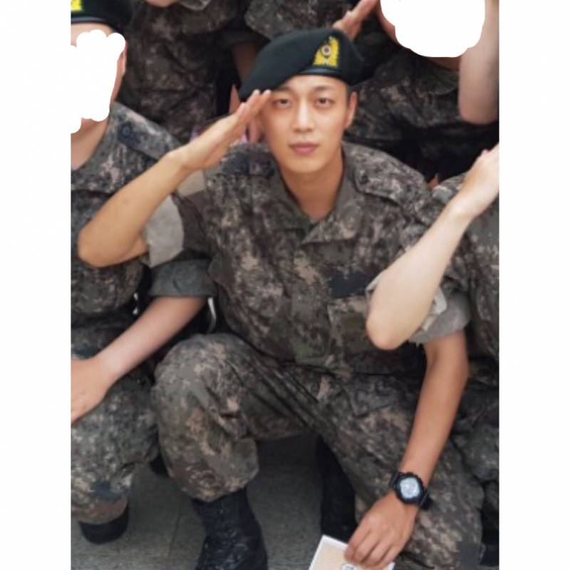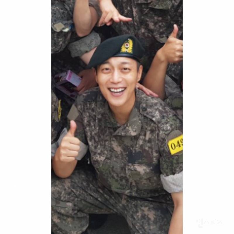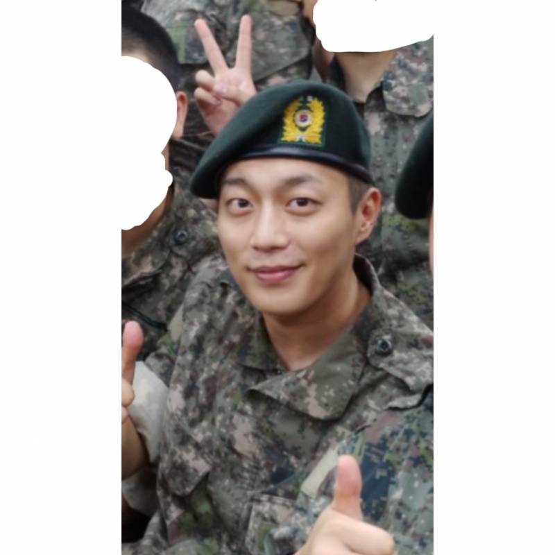 在8月24號被緊急徵招的「尹斗俊」,成為Highlight中第一個先進兵營的成員,入伍的時間超光速,正在拍攝的戲劇也急忙收尾,斗俊更貼心寫下親筆信跟粉絲暫時告別,進入江原道華川第27步兵師團服役中,終於在近日公開他的「軍中生活照」啦!照片中與軍中同梯們齊坐,穿著軍服、帶著軍帽、比著招牌「讚」手勢,臉上帶著燦爛笑容的斗俊依舊超陽光帥氣,照片一流出就讓粉絲崩潰怎麼好像一入伍更帥了(?)!更有網友表示:「本來不是粉絲,但被軍裝圈粉惹!」(光憑軍裝就吸粉XD)