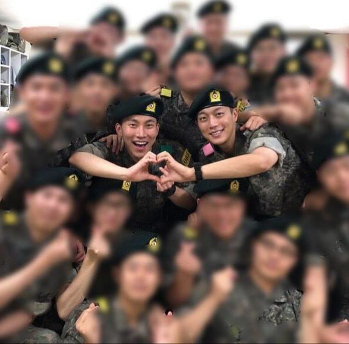 男團BTOB的隊長「徐恩光」也在8月21號悄悄入伍,與「同梯」斗俊進入同一個兵師團服役(也是BIGBANG大聲的兵師團XD),同時也是隊內第一個當兵的成員,當時突然地宣告也讓粉絲超震驚…最近終於可以看到恩光當兵的樣子啦!剃了平頭的恩光看起來氣色不錯,還跟同梯合力一起比了一個超巨的「心」呢~(不忘粉絲福利?XD)