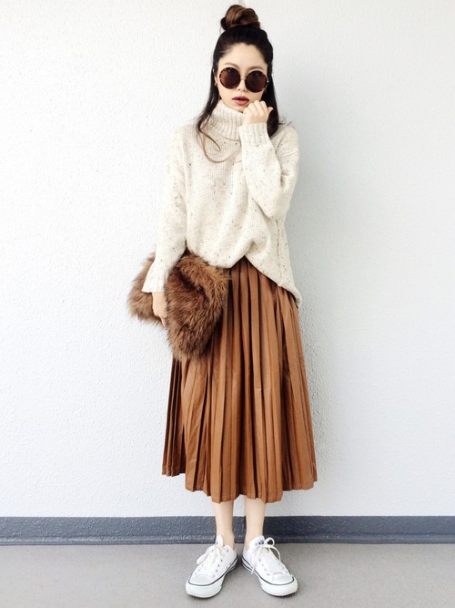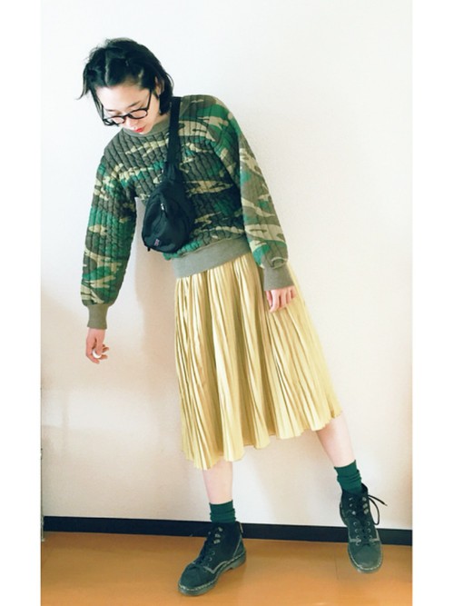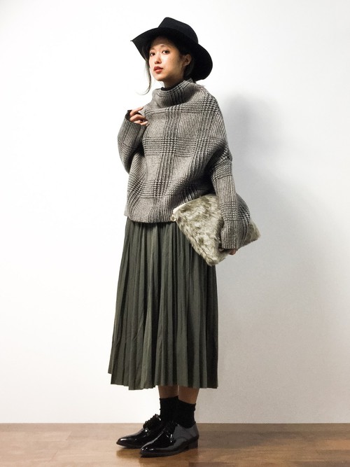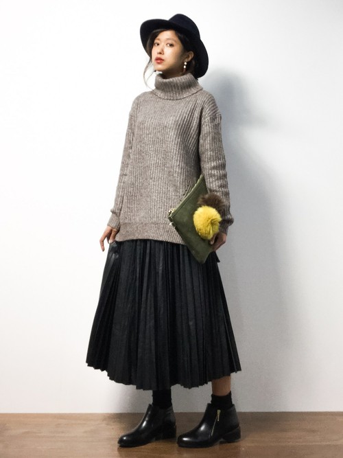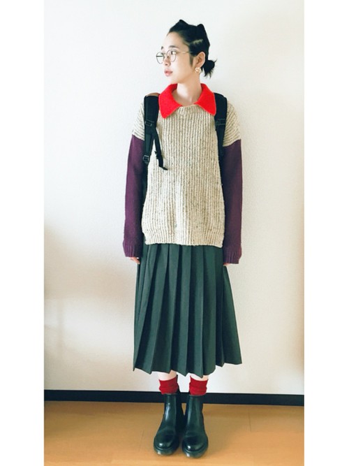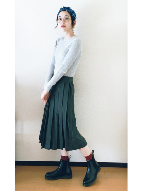 長版上衣×百褶裙