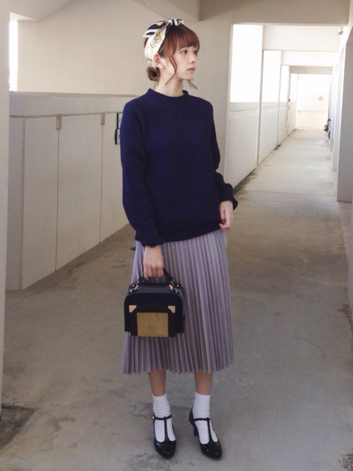 簡單的素色上衣配上長百褶裙,加上畫龍點睛的頭巾、圓框眼鏡、短襪等單品,不僅簡單又飛遜!