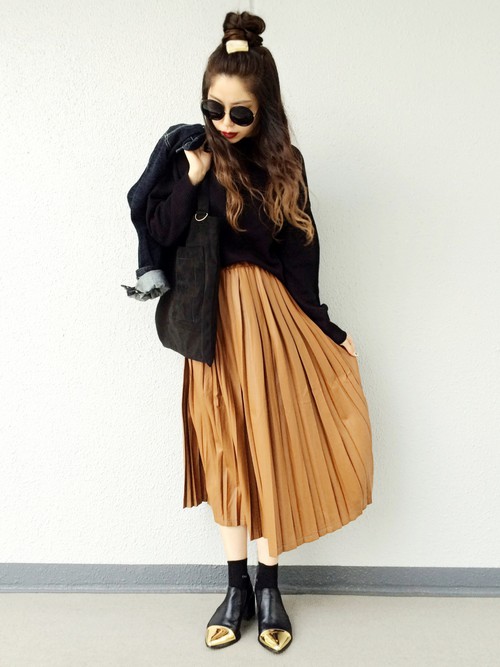 帥氣路線也是難不倒百褶裙,黑色與駝色的搭配意外地match!