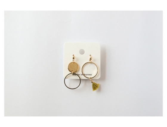 不對稱圓形金框流蘇耳環