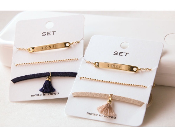 LOVE閃愛流蘇手鍊3件組