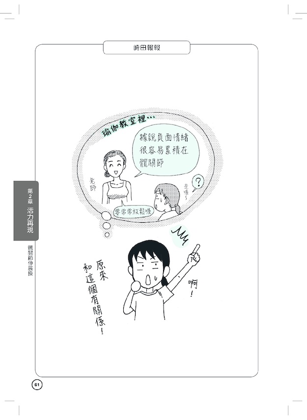 原本凡事提不起勁、過著低迷人生的日本漫畫家崎田美菜開始上瑜伽課後,身心各方面狀況都變好了,後來更發現,就算只是在家做簡單的伸展,也能立即感受到身體暖和輕鬆了起來。於是她開始在網路上連載懶人瑜伽漫畫,竟受到轉發上萬次的廣大迴響!可以隨時隨地做又很有感的簡單瑜伽,你想不想試試看呢?