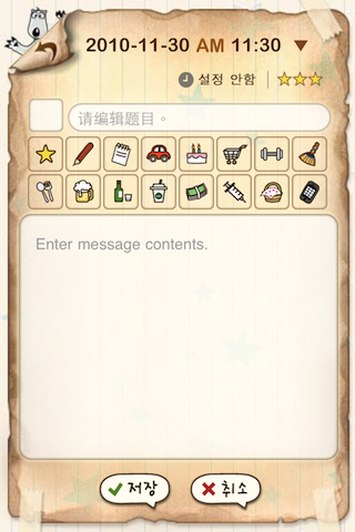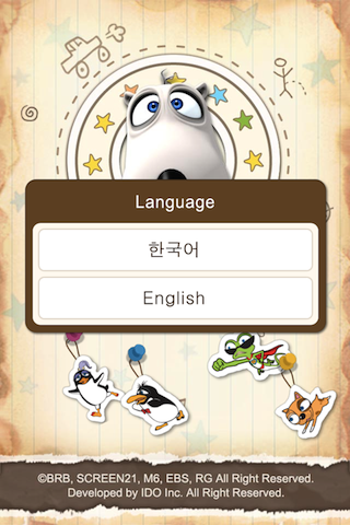 首次開啟軟體時會詢問預設語言,有英文跟韓文兩種,看到背景那些可愛吊飾了嗎?左右搖擺會因地心引力下垂喔,感覺仿造真正的筆記本,別有一番用心呢!