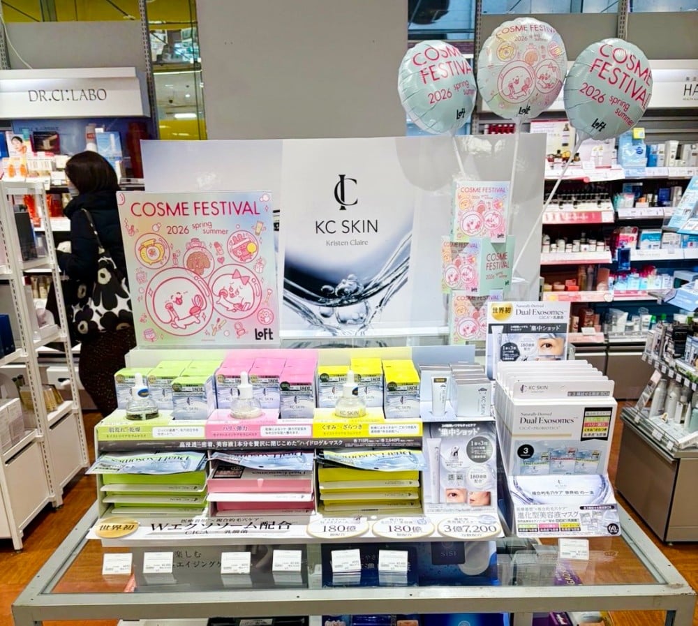 專攻外泌體科技的保養品牌KC SKIN在日本市場迎來重大銷售里程碑!KC SKIN突破激烈的日本保養品市場競爭,獲選參加日本知名潮流選品通路 LOFT 舉辦的「LOFT Cosme Festival 2026SS」春季美妝展,並將於展期中首發重磅眼霜新品。