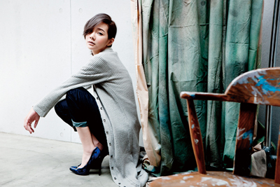 以復古簡約的穿著作為重點,在款式上就選擇比較少見的復古寬管褲來搭配短版上衣。顏色也儘量以不喧嘩的大地色或深色來完成。